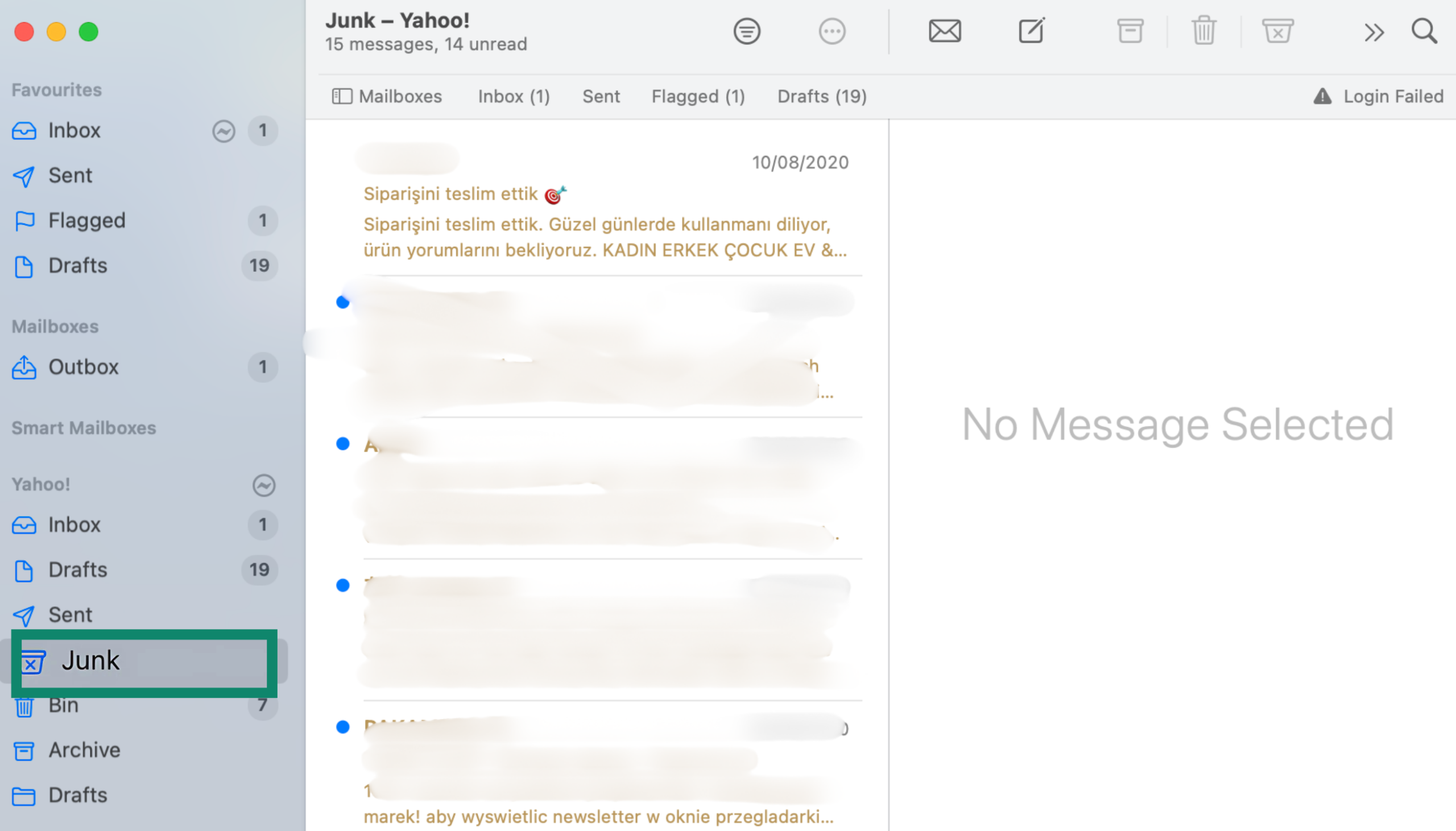 - Open Apple Mail and select the Junk folder from the sidebar.