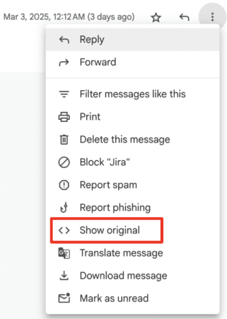 1. Open the email, tap on the three dots icon, and select “View Source” or “Show Original” (this varies by provider).