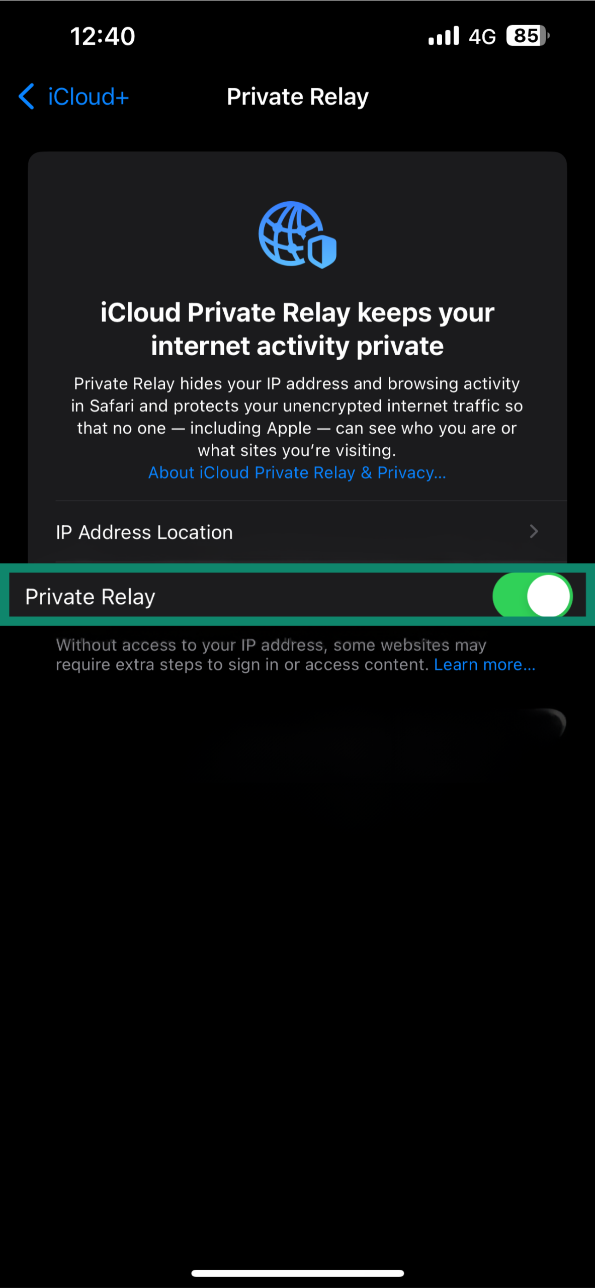 3. Turn Private Relay on.