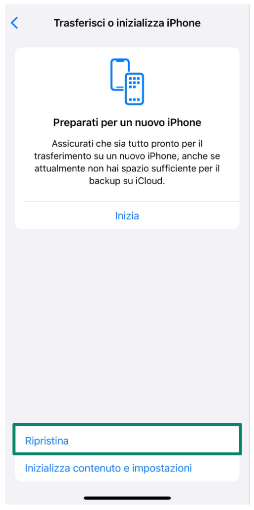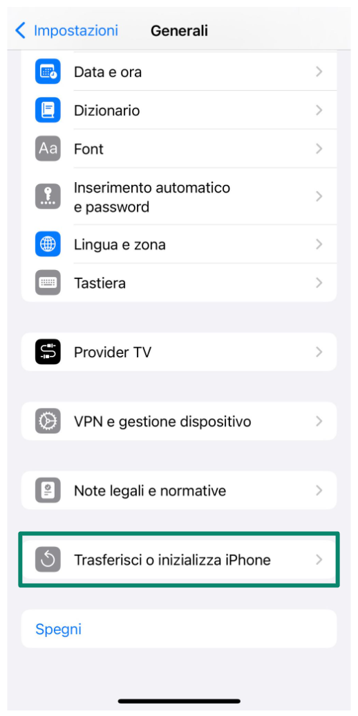 - Scorri verso il basso e seleziona Trasferisci o inizializza iPhone.