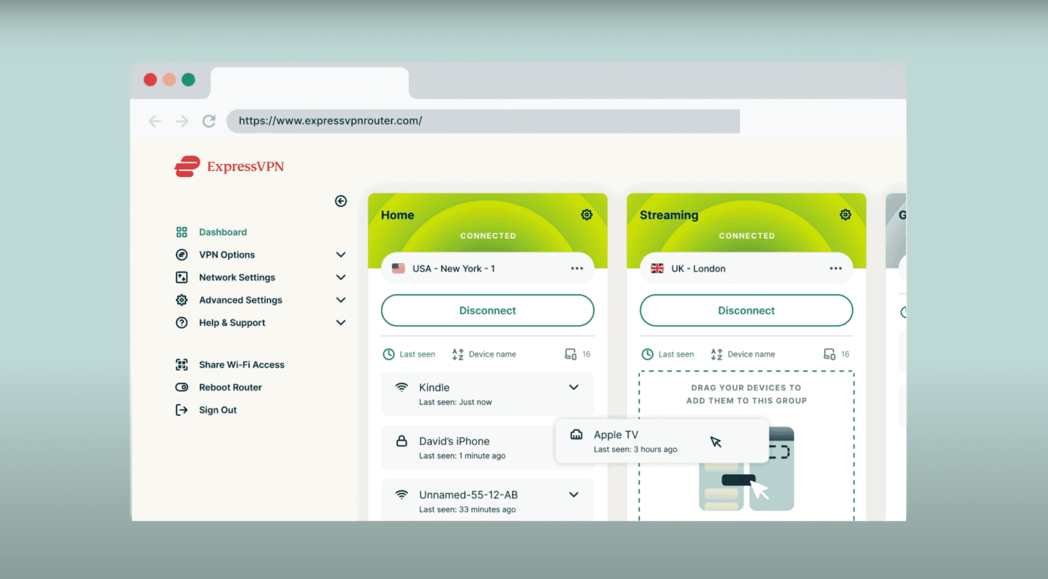 - Aggiungi ai preferiti la pagina delle impostazioni del router: In questo modo potrai accedere facilmente alle impostazioni della VPN sul router ogni volta che hai bisogno di apportare modifiche. (Per i router con ExpressVPN, il sito è expressvpnrouter.com)