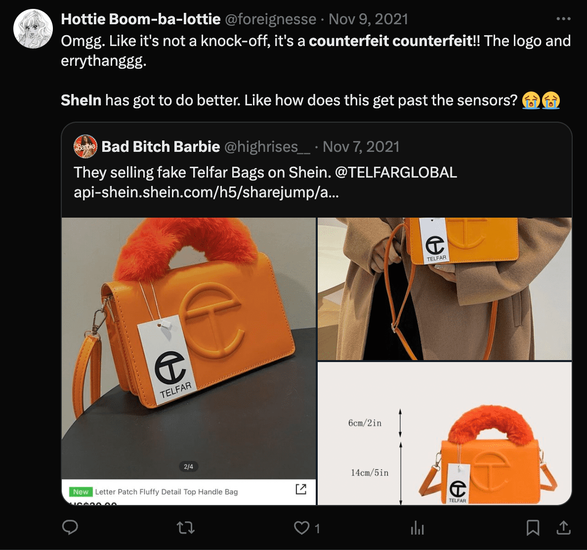 サードパーティベンダーが商品を販売するプラットフォームでは、偽造品に遭遇する可能性が常にあります。一部の顧客は、有名ブランドの模造品を受け取ったと報告しており、失望や不満を招いています。Sheinは偽造品リストを削除する措置を講じていますが、販売前にすべての問題を発見するのは困難です。