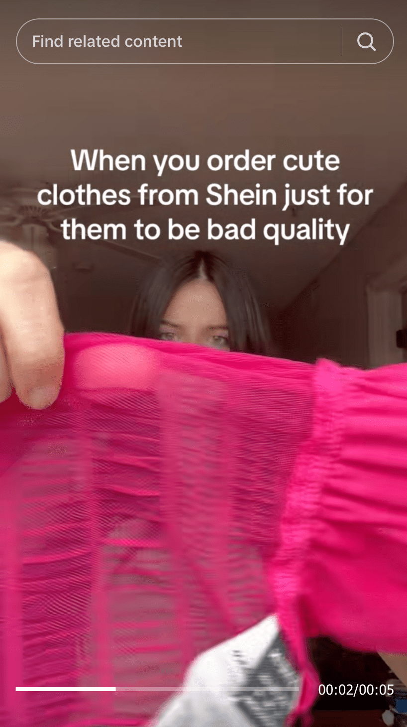 Sheinが常に在庫を更新できることは、その魅力の一部ですが、これには重大な欠点もあります。同ブランドの急速な生産モデルは、商品の質よりもスピードが優先されるため、多くのアイテムが大量生産されています。その結果、商品説明と異なるものが届いたり、数回の使用で壊れたりするという報告もあります。