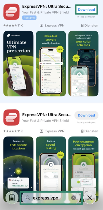 2. Zoek naar "ExpressVPN” en tik op Downloaden om de app te installeren.