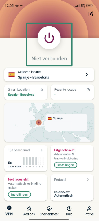5. Tik op de Quick Connect-knop om verbinding te maken met een server en je IP-adres te maskeren.