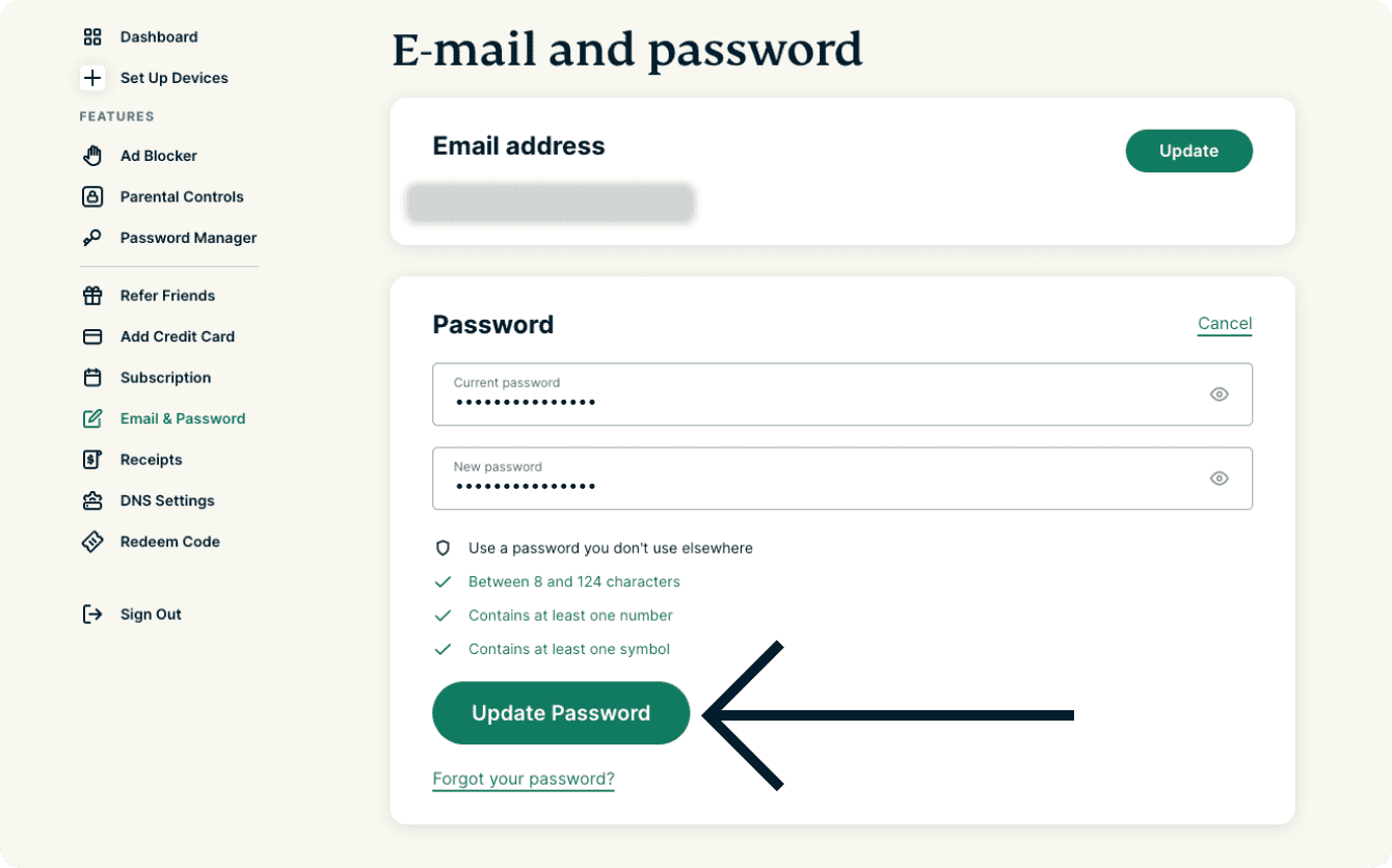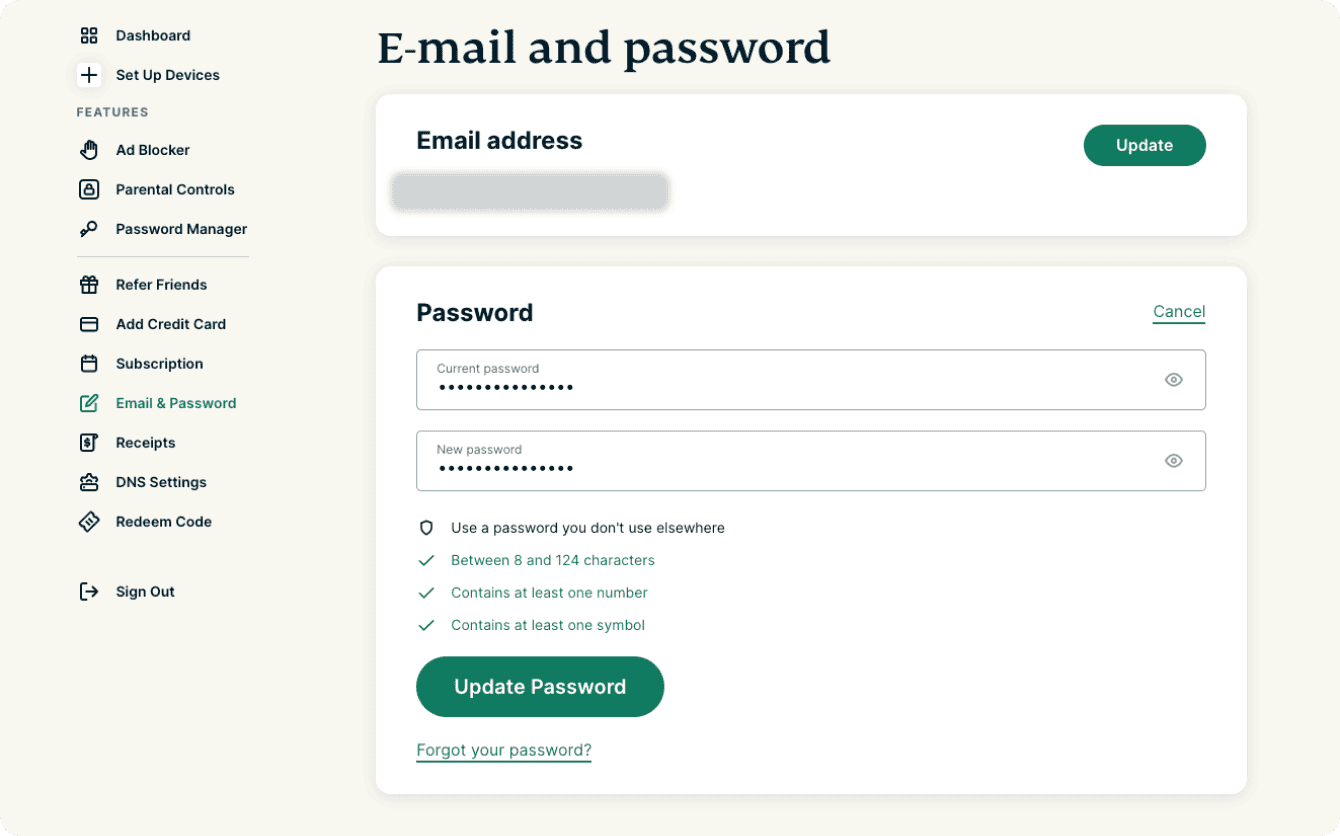 Este guia mostrará como alterar a senha da sua conta ExpressVPN. Você só pode alterar sua senha no site da ExpressVPN, e não no aplicativo ExpressVPN.