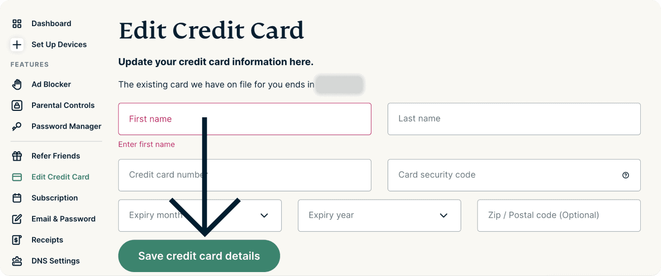 Este guia mostrará como atualizar os detalhes do cartão de crédito associado à sua conta da ExpressVPN. Isto permite que você renove sua assinatura usando um cartão de crédito diferente daquele que você usou anteriormente.