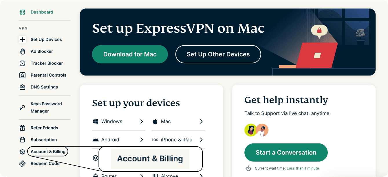 Need help? Contact the ExpressVPN Support Team for immediate assistance.