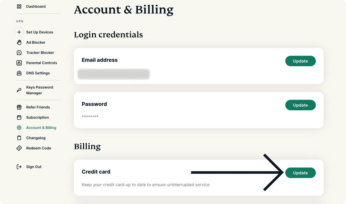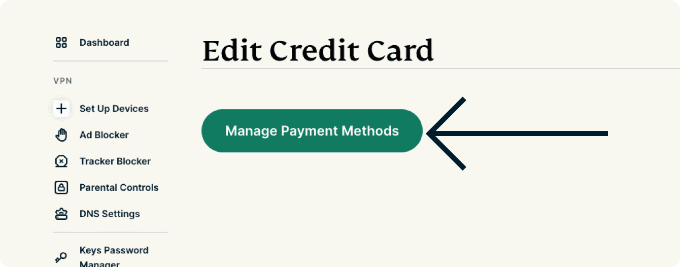 This guide will show you how to update the credit card details associated with your ExpressVPN account, including how to add new credit cards, updating existing ones, and removing credit cards. This enables you to renew your subscription using a different credit card from the one you used to sign up.