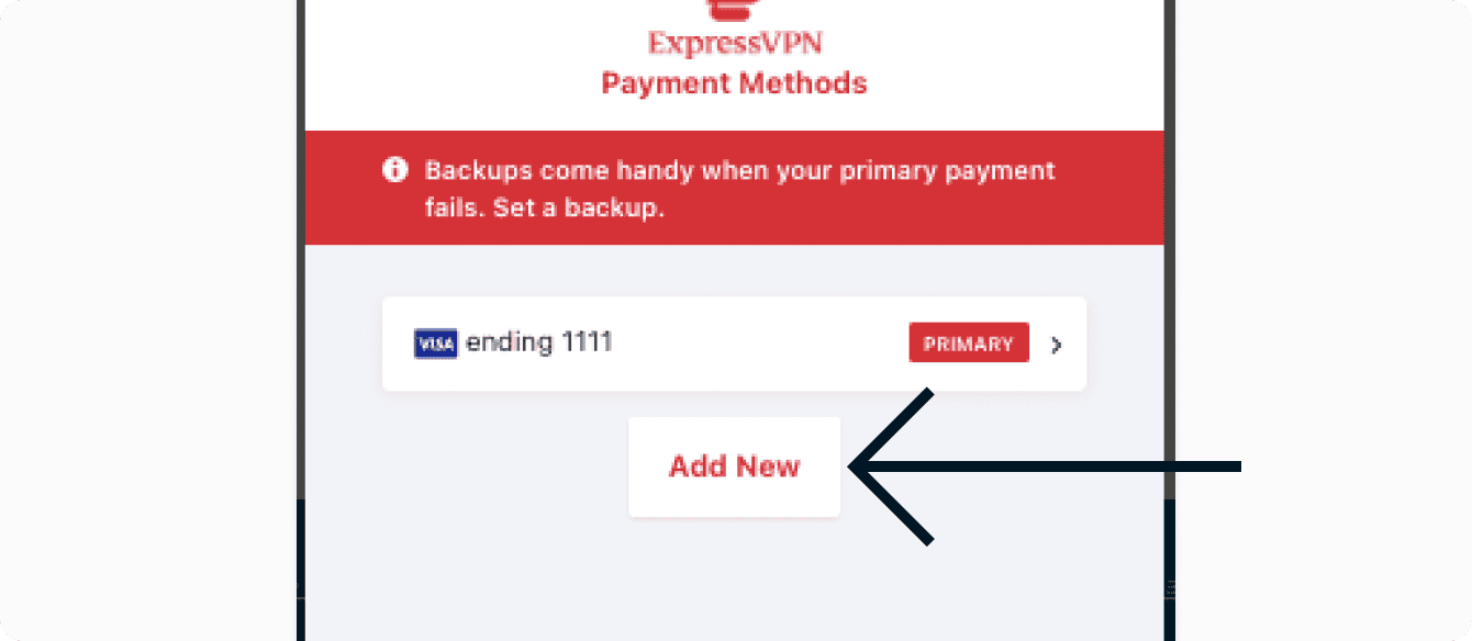 Note: You can only remove a credit card associated with your ExpressVPN account if you have another credit card assigned as your primary payment method.