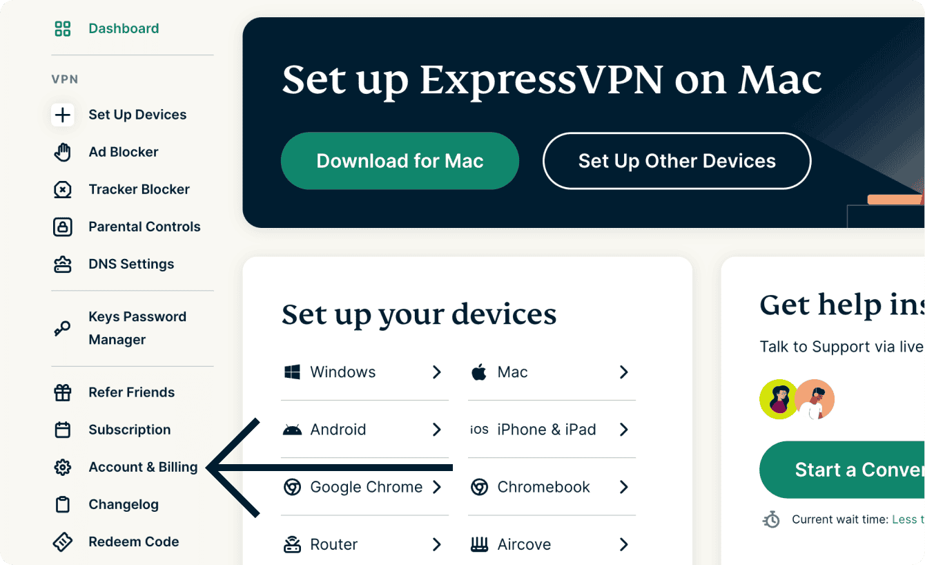 Need help? Contact the ExpressVPN Support Team for immediate assistance.