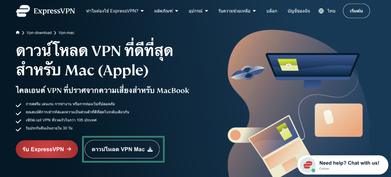 1. ดาวน์โหลดแอป ExpressVPN สำหรับ macOS จากเว็บไซต์ทางการ