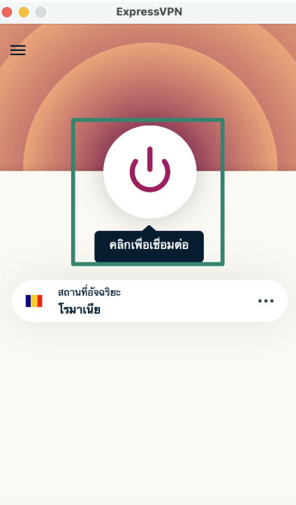 5. กดปุ่ม การเชื่อมต่ออย่างรวดเร็วเพื่อเชื่อมต่อไปยัง ExpressVPN และปิดบัง IP address ของคุณ