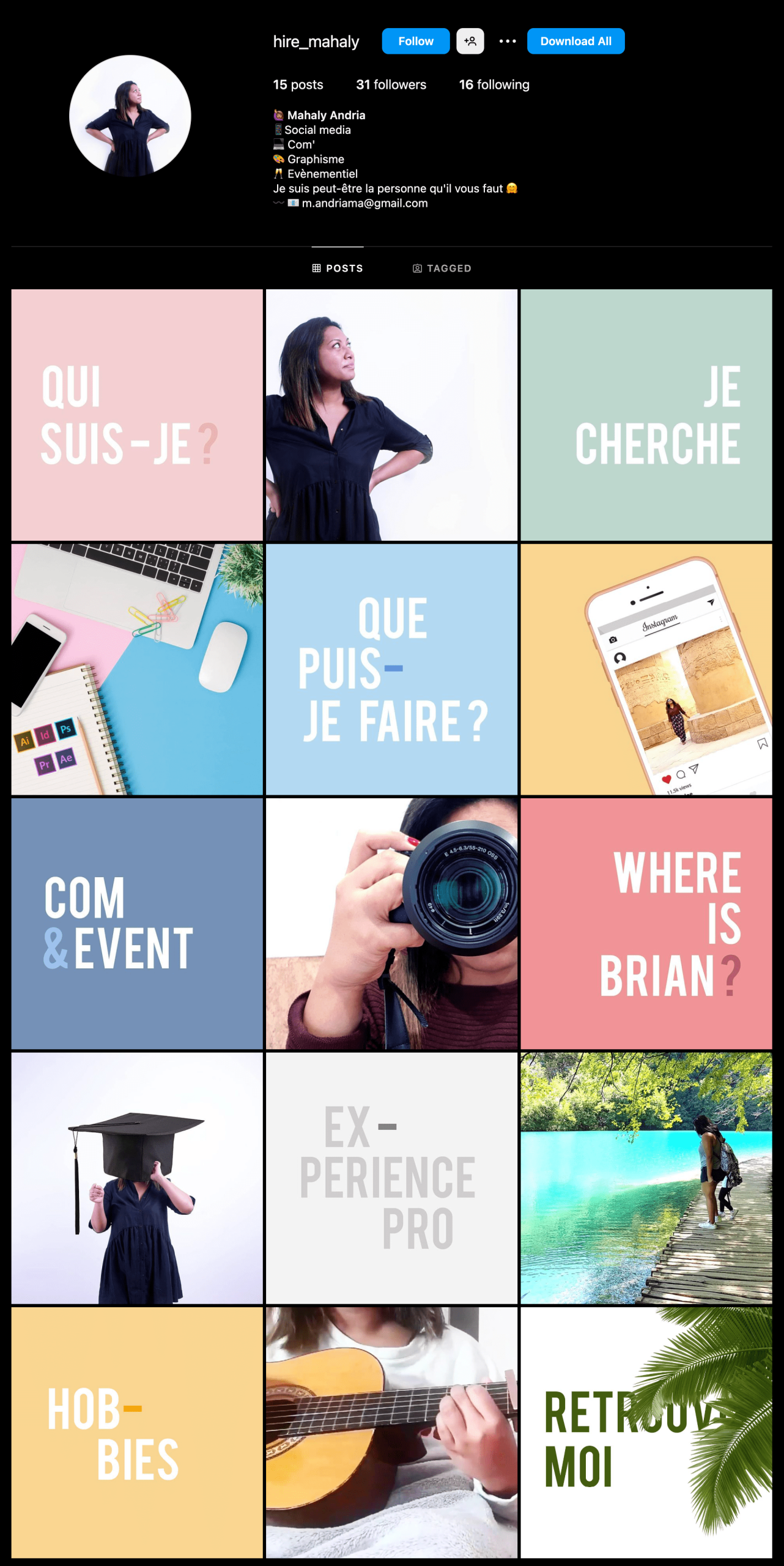 Viele aufstrebende Kreative sind diesem Beispiel gefolgt und haben ihre Instagram-Seiten in vollwertige Lebensläufe verwandelt, auf denen sie ihre Talente und Interessen präsentieren, um potenzielle Arbeitgeber zu gewinnen: