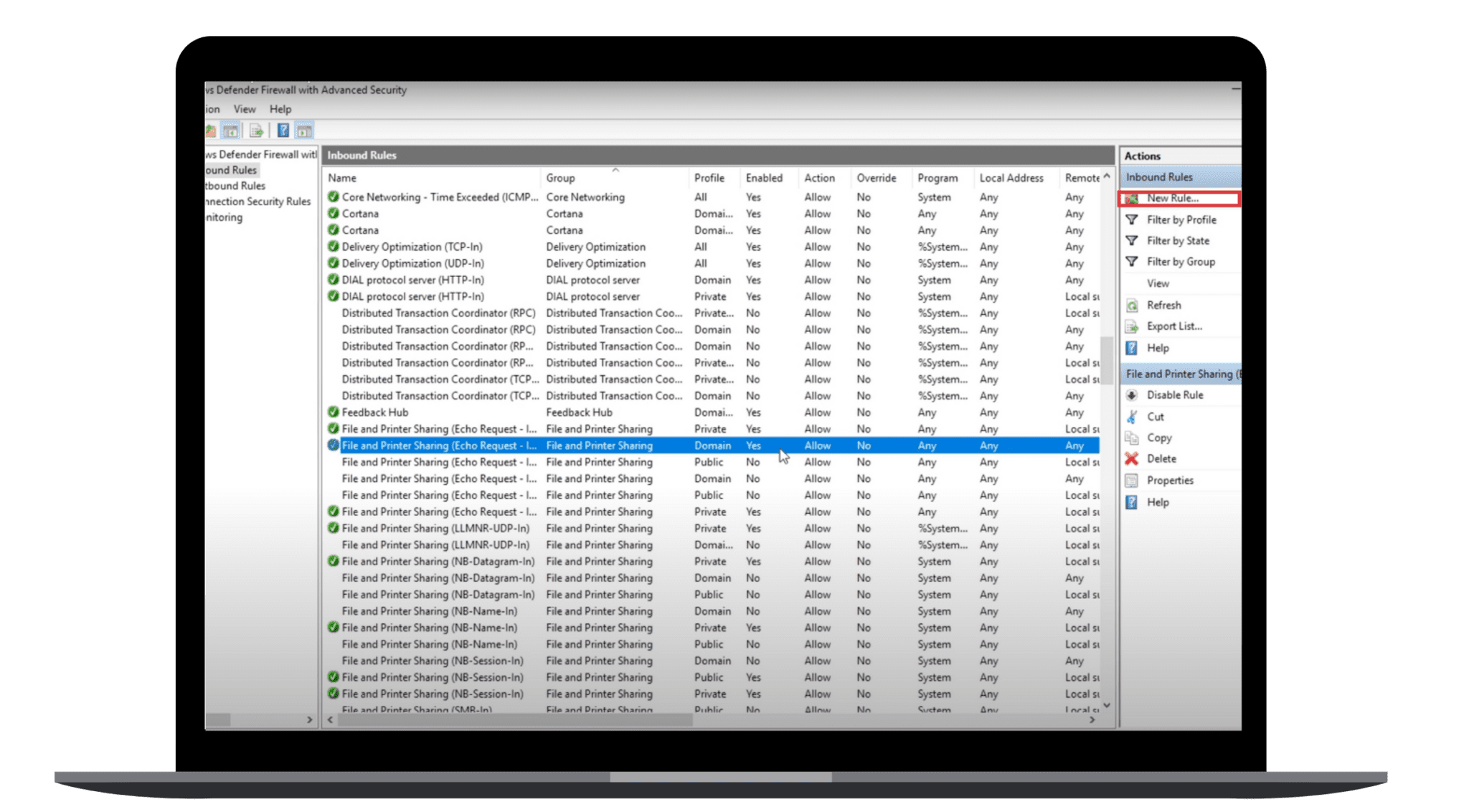 3. Dans le volet de droite, cliquez sur Nouvelle règle.