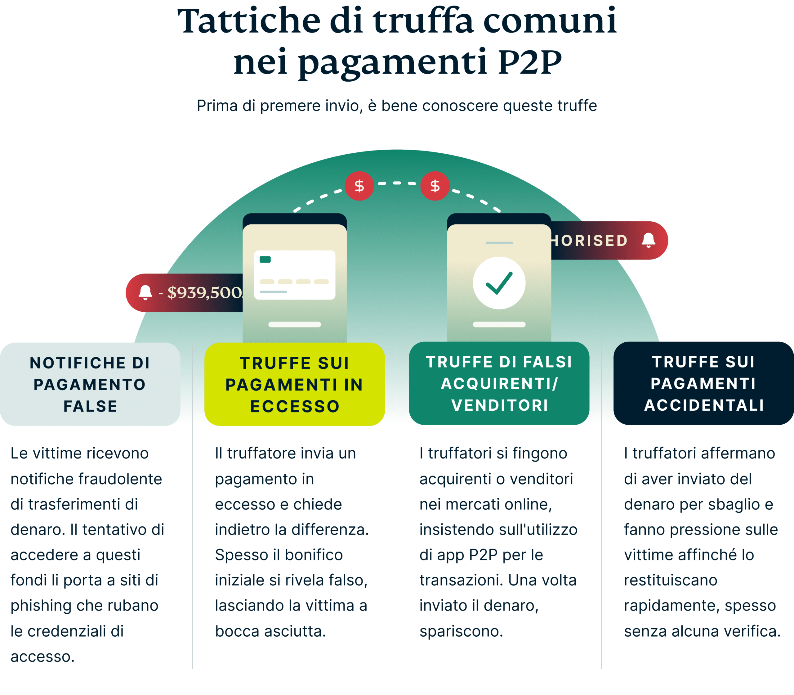 Le applicazioni di pagamento peer-to-peer (P2P) come Venmo, Zelle e Cash App sono diventate onnipresenti per le transazioni facili e veloci negli Stati Uniti. Tuttavia, questa comodità ha attirato anche i truffatori, portando a un aumento delle truffe sui pagamenti P2P. Queste truffe consistono tipicamente nell'ingannare gli utenti per indurli a inviare denaro o a divulgare informazioni personali per scopi fraudolenti.