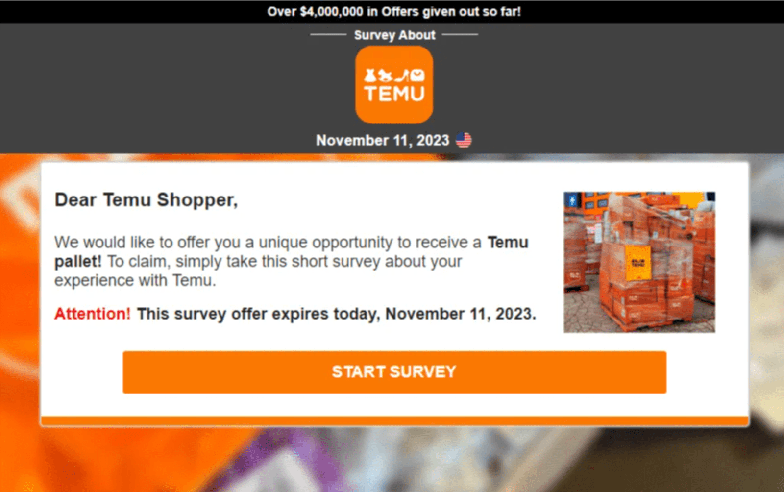 „Wypełnij krótką ankietę i otrzymaj kupon na 100 USD do swojego ulubionego sklepu”! Kto by tego nie chciał? Jednak te oszustwa związane z wypełnianiem ankiet mają na celu zebranie jak największej ilości danych osobowych, nie oferując nic w zamian. Ankieta wydaje się prosta, ale w momencie, gdy podasz swoje dane, już znajdują się w rękach oszustów i są przez nich wykorzystywane lub sprzedawane stronom trzecim. Co gorsza, obiecany kupon nigdy do Ciebie nie dociera i zastanawiasz się, gdzie podziały się wszystkie Twoje dane.
