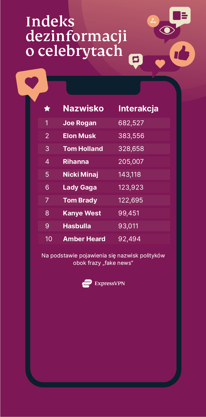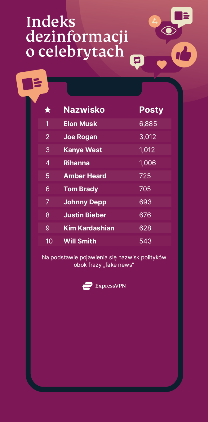 20 celebrytów najbardziej kojarzonych z fake newsami w 2022 r.